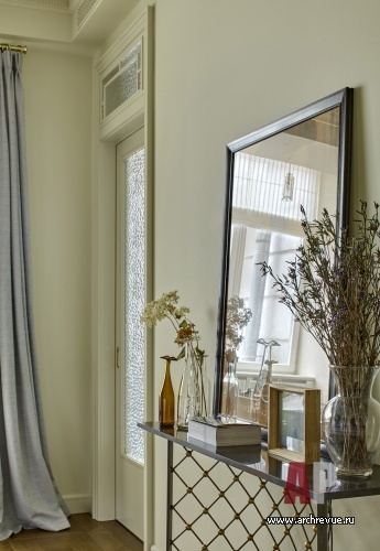 Квартира площадью 102 кв. метра расположена в пятиэтажном доме в районе Остоженки, заказчикам она досталась с типовым ремонтом в стиле 1990-х годов со сложной геометрией и полукруглыми отделками. Перед декоратором Юлией Голавской они поставили задачу создать современное пространство с элементами американской неоклассики, удобное для проживания семьи из трех человек.