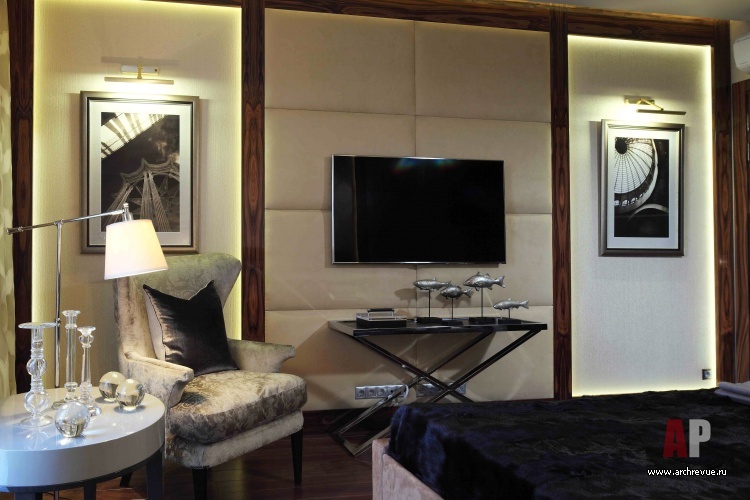Спальня кровать Mobilidea, кресло Andrew Martin