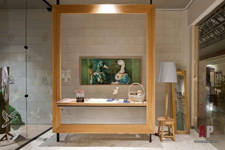 Ресторан занимает один зал на 220 посадочных мест, разные зоны (посадочные места для дневных ланчей, вечерних ужинов, семейных торжеств и небольших компаний) выделены с помощью дизайнерских средств и приемов. В их числе – элементы топиарного искусства, более характерного для ландшафтного дизайна: фигурки уток и других птиц из ярко-зеленых растений.