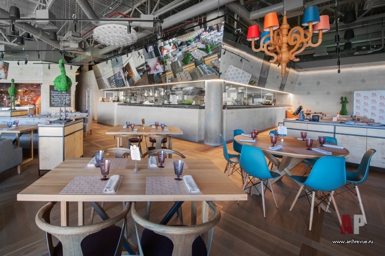 Команда архитектурного бюро Archpoint под руководством архитектора Валерия Лизунова оформила семейный ресторан «Птичий двор» в Санкт-Петербурге с авторской домашней кухней, придав ему черты уютного фермерского дома. При проектировании пространства ресторана следовало учитывать особенности его расположения в торговом центре Atlantic City.