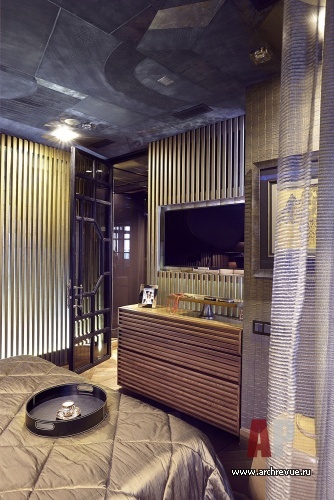 Заказчица, давняя знакомая архитектора Татьяны Смирновой, приобрела квартиру на последнем этаже нового дома и обратилась с пожеланием создать этнический интерьер в темной цветовой гамме. В интерьере изначально предполагалось большое количество авторских изделий, рукотворных фактур и отражающих поверхностей, которые превратили бы пространство в драгоценную шкатулку, тайную комнату, где реальность постоянно меняется.