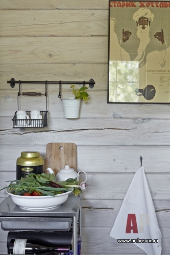 Поэтому здесь появились характерные для дачного быта кружевные скатерти и расшитые занавески, тканные ковры и винтажная мебель, советские киноафиши и предметы в стиле ретро. А сам интерьер стал выглядеть легко и непринужденно.