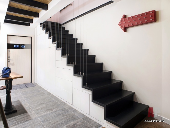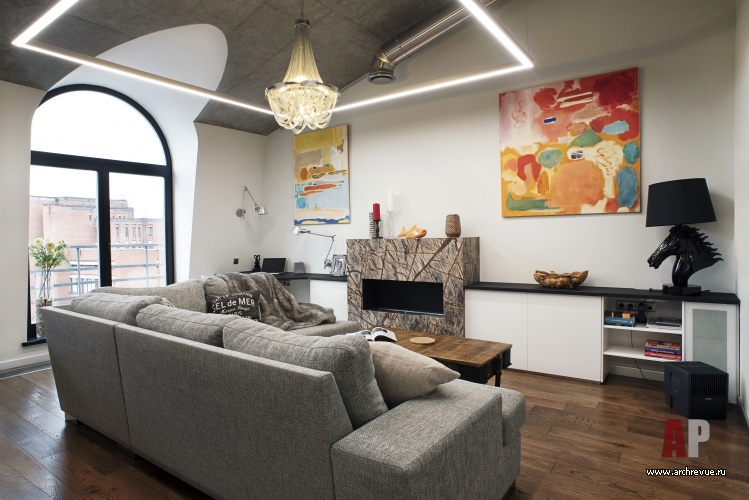 Молодая семья с ребенком приобрела трехкомнатную квартиру в мансардном этаже современного дома. Пятиметровые потолки позволили надстроить второй ярус и максимально оптимизировать пространство. Так как заказчики тяготеют к современному индустриальному дизайну, то в облике интерьера прослеживаются урбанистические элементы, характерные для эстетики городского лофта. Картины и инсталляции актуальных художников сближают жилое помещение с модным арт-пространством.