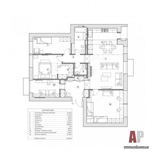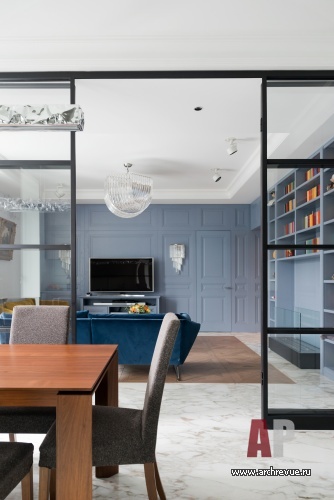 Молодая семейная пара с двумя детьми обратилась к архитекторам Алевтине Бутузовой и Елизавете Хлебниковой с пожеланием превратить их семейную квартиру в типичной «сталинке» в классический американский интерьер. В процессе работы над проектом интерьер усложнился, стал более эклектичным и функциональным.