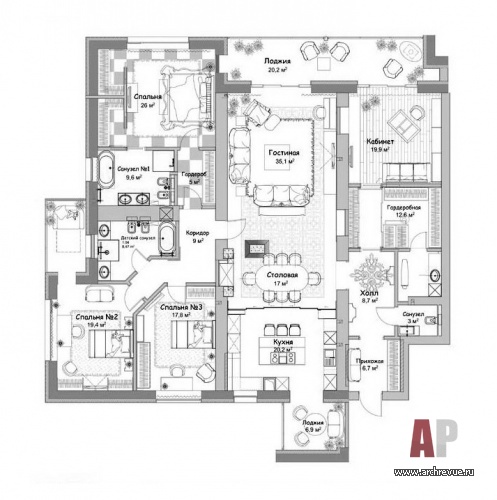 Этот респектабельный интерьер в стиле современного ар-деко команда дизайнеров под руководством Татьяны Божовской создали для давней заказчицы бюро, для которой в свое время проектировали квартиру в классике. Дом, расположенный рядом с Суворовским парком был выбран не случайно: в детстве заказчица ходила через него в школу, кормила белок и любовалась кустами сирени и исполинскими голубыми елями. Поэтому квартира с видом на живописный парк значила для нее возвращение в детство и мечту об идеальном доме.