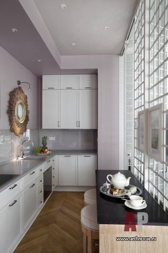 Заказчица хотела интерьер исключительно для себя и небольшой женской аудитории, много готовить в квартире не планировала, поэтому большая кухня ей была не нужна, как и огромные гардеробные. Бытовой стороне вообще следовало уделить минимум внимания, на первый план выводилась чистая эстетика, вдохновленная французскими садами и изящными парижскими интерьерами.