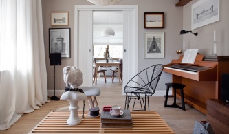 Вместе с длинным коридором она обыграна как единое целое. В затемненной части квартиры к гостиной примыкает блок «мокрых» и вспомогательных помещений: два санузла, постирочная, гардеробная. В глубине пространства расположены: хозяйская спальня (с выходом в гардеробную), кабинет и гостевая спальня со своим буферным холлом. Особенность планировки квартиры – логичные внутренние связи, обеспечивающие комфортную коммуникацию.