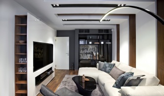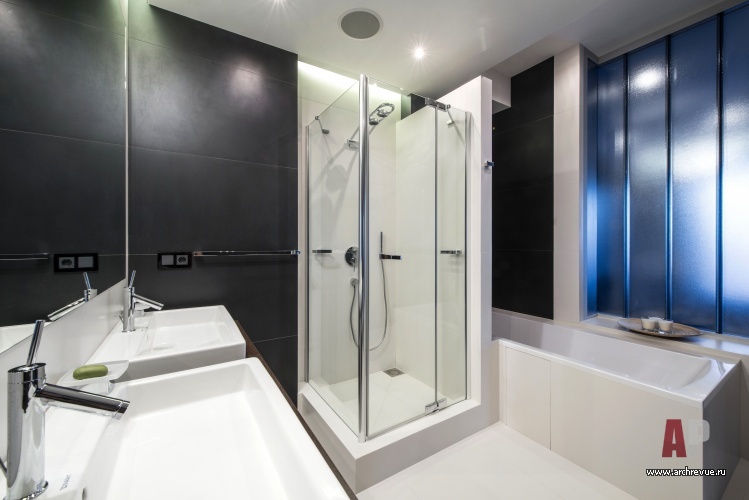 На 46 этаже небоскреба «Город столиц» в Москва-Сити архитектор Егор Серов оформил четырехкомнатную квартиру площадью 172 кв. м, создав современный рациональный интерьер в мужском стиле. Владелец квартиры – американский бизнесмен – об облике своих московских апартаментов задумался заблаговременно, к архитектору он обратился на стадии строительства дома, что позволило максимально эффективно решить и согласовать вопросы с перепланировкой (добавить еще одну спальню, спланировать общую зону), инженерным наполнением и строительством.