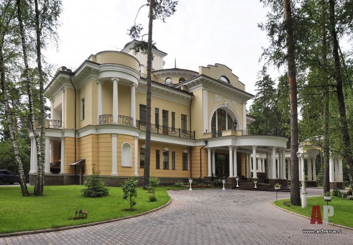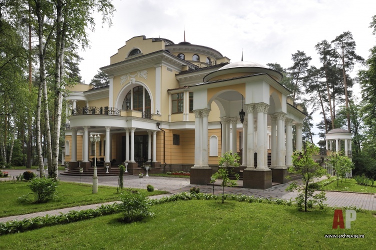 Архитекторы провели масштабную реконструкцию, превратив старую государственную дачу в современный частный особняк, вдохновленный памятниками русской усадебной культуры и исторической обстановкой европейских дворцов. Реконструкция включала увеличение площади резиденции, пристройку дополнительных объемов, декорирование фасадов и интерьеров, замену инженерных систем, строительство автономной автоматизированной котельной.