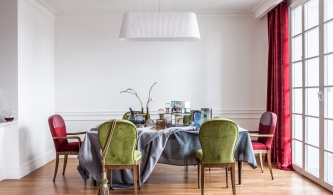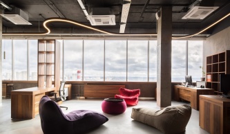 При этом зона «столовой» не выглядит однообразно, зал наполнен стильной мебелью европейских брендов и авторскими изделиями – стеллажи, стойки раздачи, столы были выполнены на заказ в скандинавской стилистике.