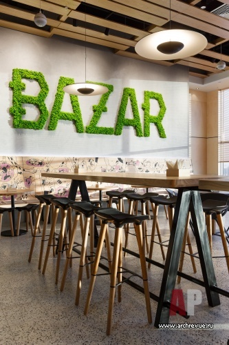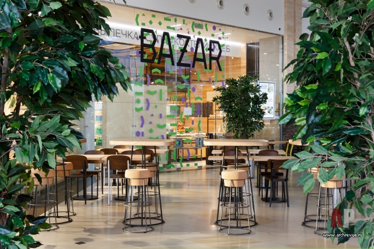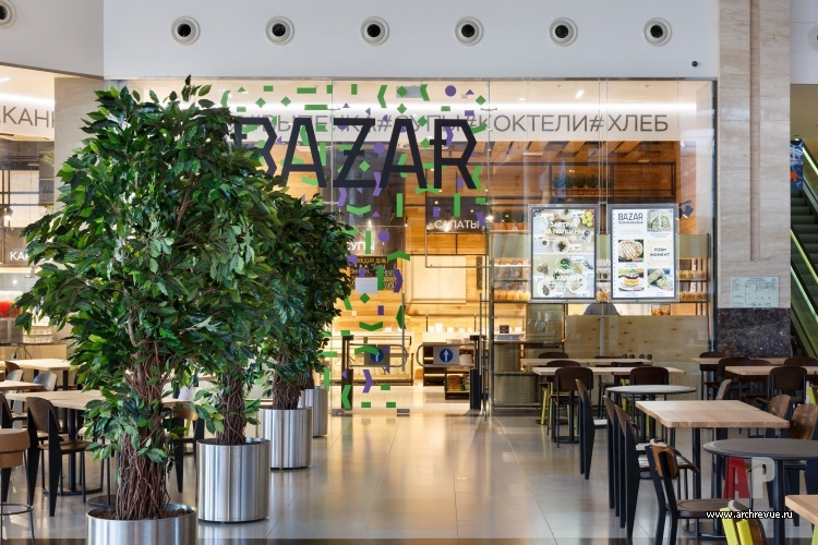 Архитекторы бюро Archpoint оформили первый в Москве ресторан в сети демократичных заведений домашней кухни BAZAR. Ресторан с концепцией «фри фло» расположен в торговом центре Columbus, в основу его дизайн-проекта была положена задача создать атмосферу фермерского рынка с помощью современных дизайнерских приемов.