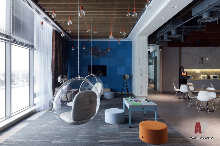 Их архитекторы называют HUB – своего рода клубное пространство с кофе-поинтами, мягкой мебелью, игровыми блоками. Предложенная концепция планировки позволяет сотрудникам беспрепятственно передвигаться по офису, работать в любом его месте, а также много общаться с коллегами в рамках рабочего процесса и в свободное время.