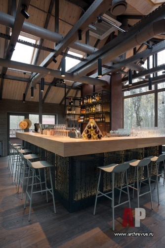 Современный ресторан вобрал в себя черты актуального скандинавского интерьера с демократичной атмосферой загородного шале, уютного и обитаемого… При оформлении интерьера авторы проекта сделали ставку на разнообразные натуральные материалы, теплую, природную, колористику, а также технологичные изделия из металла и стекла.