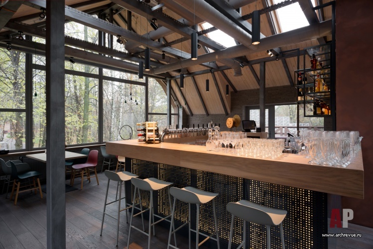 Архитекторы бюро А4 спроектировали и оформили бар-ресторан Craft Bar Pion, расположенный в парке Сокольники. Ресторан занимает отдельное двухэтажное строение с панорамным остеклением и открытой террасой и входит в состав комплекса строений летнего кинотеатра «Пионер». Тесное соседство с парком и ориентированность на интеллигентную публику определи выбор в пользу современного скандинавского дизайна с природными мотивами и неформальной обстановкой, способствующими общению и отдыху вдали от шума мегаполиса.