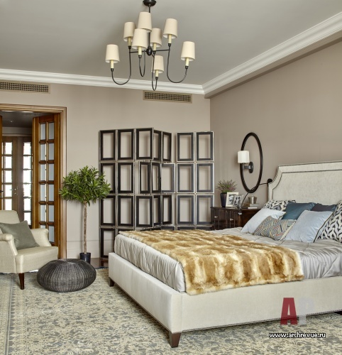 Спальня кровать Vanguard Furniture, тумбы Selva; ширма дизайна Келли Хоппен, поставщик Home Concept