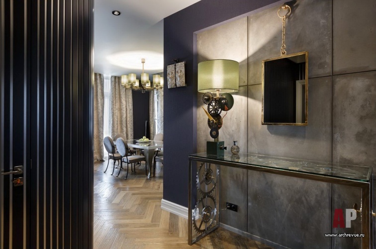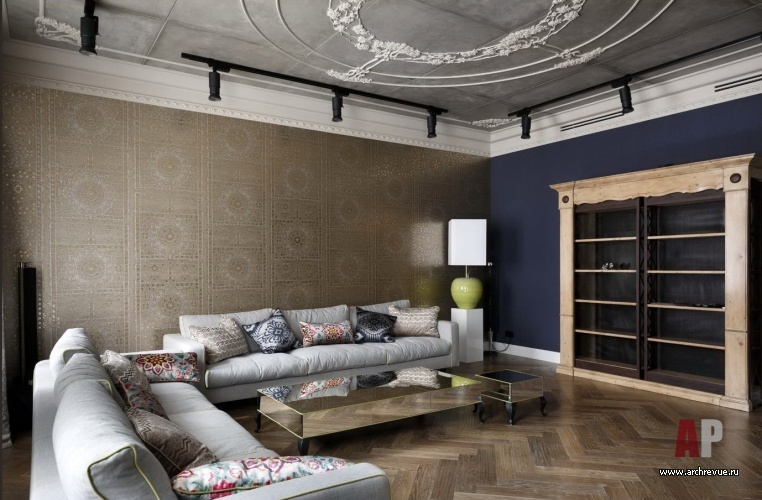 Квартира площадью 160 кв. м, расположенная на Морском проспекте в Санкт-Петербурге, - удачный пример соединения традиционных приемов и современных технологий. Глядя на нее, сложно сказать, чего в ней больше: классики или примет современного дизайна. В любом случае, архитекторам удалось создать небальный микс из лепнины, обоев с мавританским орнаментом, дворцового паркета, мебели в духе стимпанка и стеллажей со стеклянными фасадами на кронштейнах. Эффектно, гармонично и ярко!