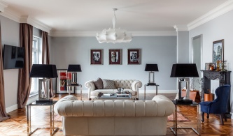 Для молодого мужчины, профессионального спортсмена архитектор Егор Серов спроектировал квартиру в доме на Мосфильмовской улице. Основной идеей интерьера стало стремление создать удобное современное жилье для холостяка, а также расширить пространство и сделать акцент на вид из окон в сторону Воробьевых Гор.