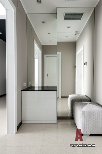 Вход в квартиру предваряет небольшая прихожая с гардеробом для верхней одежды и гостевым санузлом.