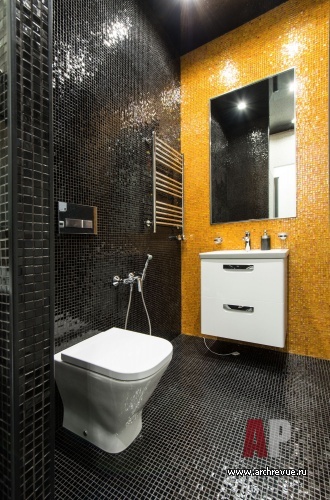 Монохромная цветовая палитра, строгая геометрия рисунков, плитка под кирпич, стиль минимализм – приметы, характерные для мужских интерьеров.