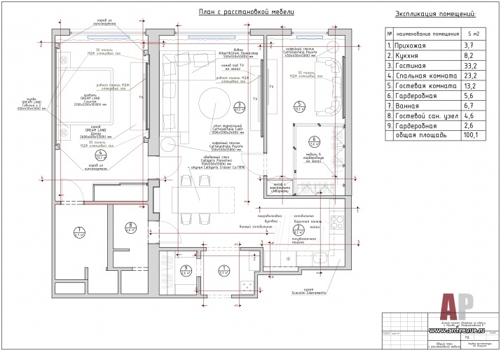 Гостиная диван Albert&Shtein, стол журнальный Porada