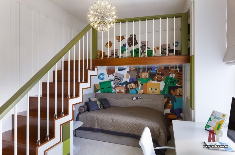 Цветовая гамма выбрана мягкая, с благородными холодными оттенками: серым, бежевым, оливково-зеленым.
