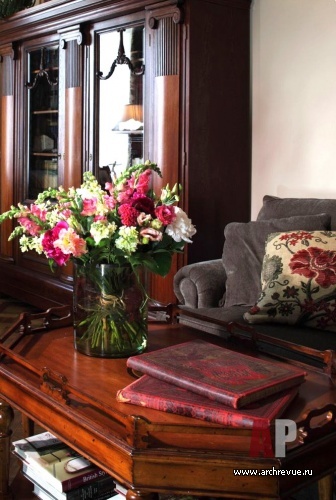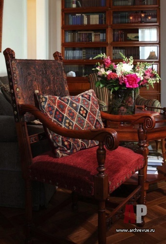 Большие ценители и знатоки старомосковских интерьеров, плотных, детально проработанных, верных исторической традиции архитекторы бюро «ND Студия» оформили квартиру для ученого-геолога, преподавателя МГУ, влюбленную в антиквариат и бережно хранящую старинные предметы, доставшиеся еще от бабушек. С помощью аутентичных деталей, предметов из коллекции заказчика и авторских изделий они создали интеллигентный интерьер – профессорскую квартиру, отражающую жизнь семьи.