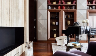 Ключом к декоративному образу интерьера стала огромная коллекция антиквариата, книг и семейных фотографий хозяйки квартиры. Именно поэтому за основу была взята стилистика начала ХХ века – эпохи модерна и его переходных форм. Значительная часть мебели была привезена с дачи заказчицы, дизайнеры ее бережно отреставрировали и наполнили новой жизнью.