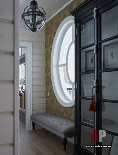 Чтобы дать больше света, для стен и потолков, зашитых деревом, архитекторы выбрали молочно-белый цвет. Лессировочные краски пропускают выразительную текстуру досок и меняют оттенки в зависимости от времени суток, освещения и декоративных предметов поблизости. Пол выстлан паркетом из выбеленного дуба, в белой эмали выполнены также двери и дверные порталы. Цветовое разнообразие заключено в декоративном наполнении: богато орнаментированных обоях, текстиле и этнических предметах, привезенных из разных концов планеты и отражающих особенности разных культур. Практически за каждой вещью здесь стоит своя история, характер, настроение.