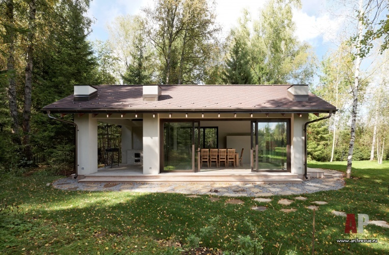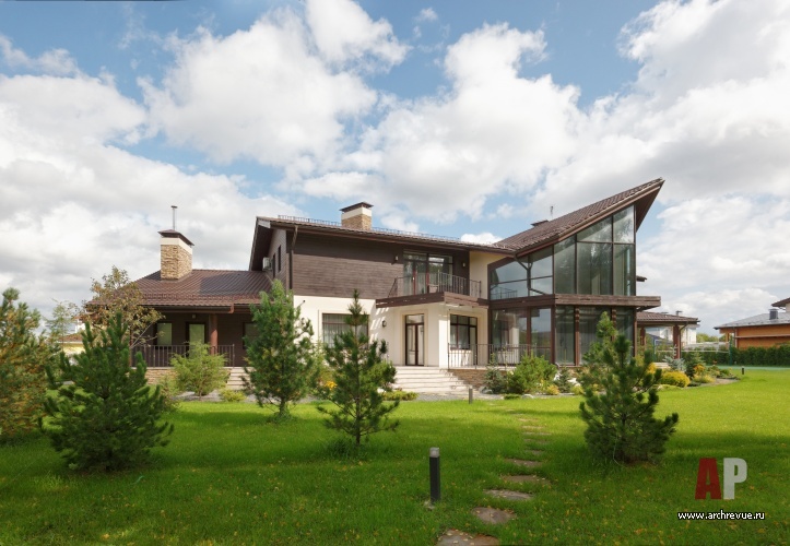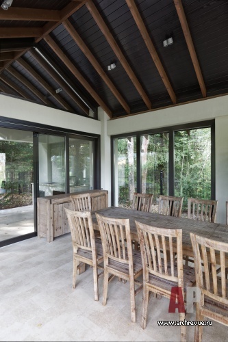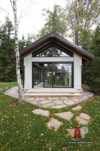 В подмосковном коттеджном поселке семья с детьми приобрела готовый дом с удачным расположением: участок имеет большую площадь и примыкает к лесу. Архитектура дома представляет микс из традиционного шале и модернистской постройки со сложной конфигурацией кровли, большой площадью остекления и угловым высоким эркером. Будучи убежденным горожанином, заказчик не торопился переезжать, дом пустовал несколько лет, пока семья не решила использовать его как дом для уик-эндов.