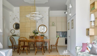 Новую квартиру для себя и своей семьи архитектор Арсений Борисенко искал долго и скрупулезно: рассматривал конструктивистские дома, ранние «сталинки» и другие нетривиальные варианты. Жилье предпочитал с историей, исходной качественной архитектурой, особой энергетикой… Выбор остановил на очень необычной квартире в доме, построенном более 200 лет назад. Здание с мощной кирпичной кладкой и историческими арочными сводами до 4,5 метров высотой изначально являлось частью дворцового флигеля, возведенного при Екатерине II.