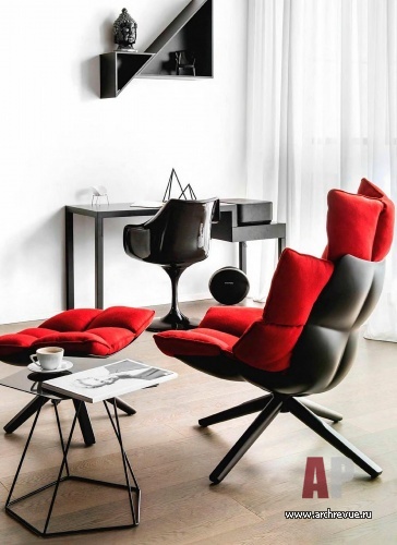 Гостиная диван, журнальные столики, Bonaldo, кресло и банкета B&B Italia, рабочее кресло Vitra, письменный стол Kendo Mobiliario