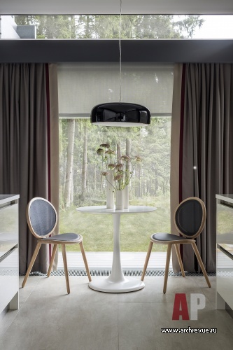 Современный интерьер выглядит элегантно, в его оформлении автор проекта использовала отделочные материалы с благородными фактурами и мягкими тканями. «Мы стремились создать комфортную среду для отдыха и покоя, а также открыть интерьер на ландшафт, сделать деревья и небо частью каждого жилого помещения, включая ванные комнаты», - рассказывает дизайнер.