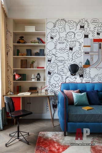 Детская мальчика кровать, «Мебельная лаборатория BRAND», диван, доска для мела по собственным эскизам; комод Bragindesign