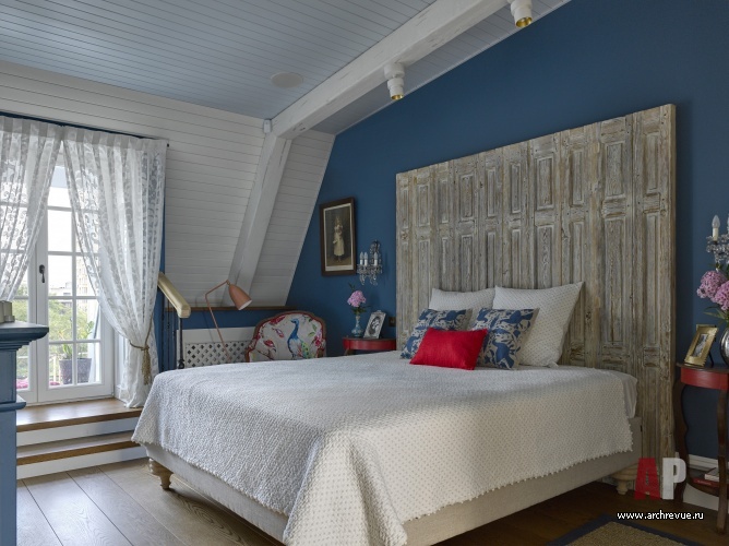 Спальня кровать, на заказ, изготовление Loffilab, изголовье антикварное, столики прикроватные Cote Table, кресло антикварное перетянуто тканью PT design