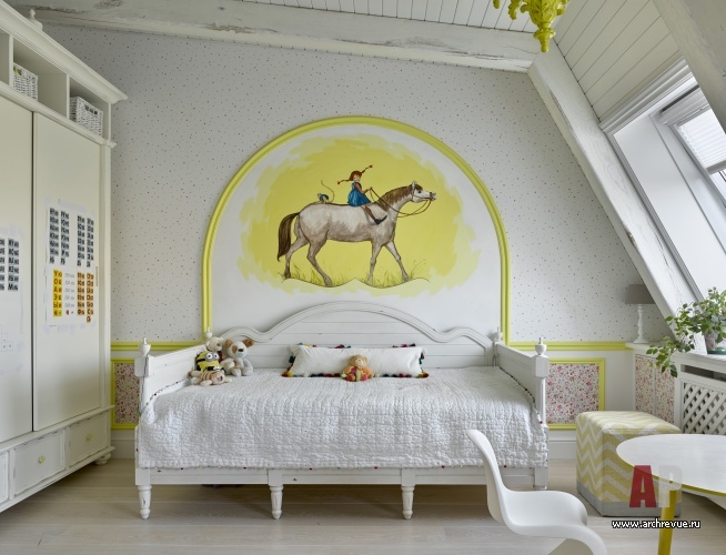 Детская девочки шкаф по эскизу на заказ, кровать Restoration Hardware, стулья Vitra, cтол fineobjects