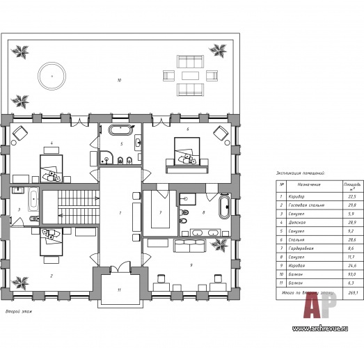 «У хозяина дома очень хороший вкус и прекрасное ощущение пространства, - отмечают дизайнеры. – Особенно ценное качество архитектурного проекта – большое количество панорамных окон (они есть даже в прихожей, гардеробной и всех четырех приватных санузлах), отчего весь объем кажется пронизанным светом.