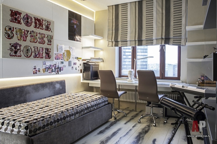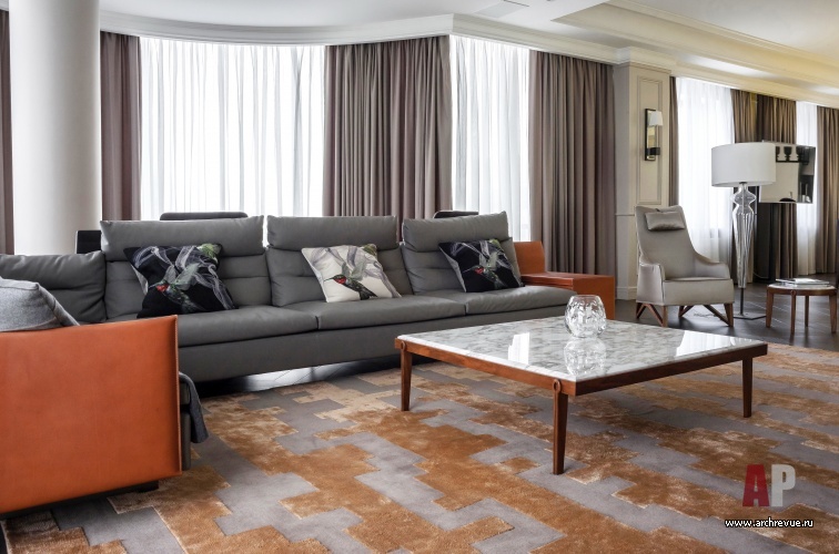 Заказчики – семейная пара с тремя детьми – обратились в бюро «ЛВА-Интерьер» после того, как увидели один из давних проектов – городской интерьер с респектабельной атмосферой и качественными отделочными материалами. В новом жилом комплексе на Новом Арбате они приобрели две соседние квартиры и обратились с пожеланием их объединить, сделать рациональную для проживания большой семьи планировку и создать статусный и запоминающийся интерьер.