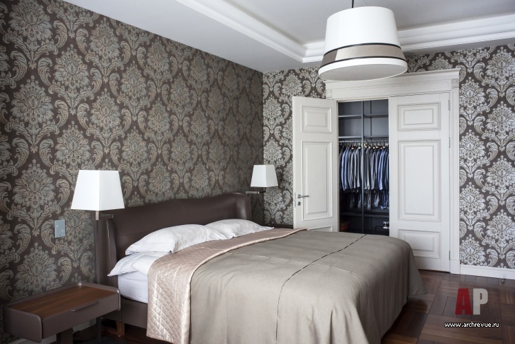 Спальня хозяина кровать Giorgetti, встроенный шкаф на заказ, изготовление «АФ Ника»