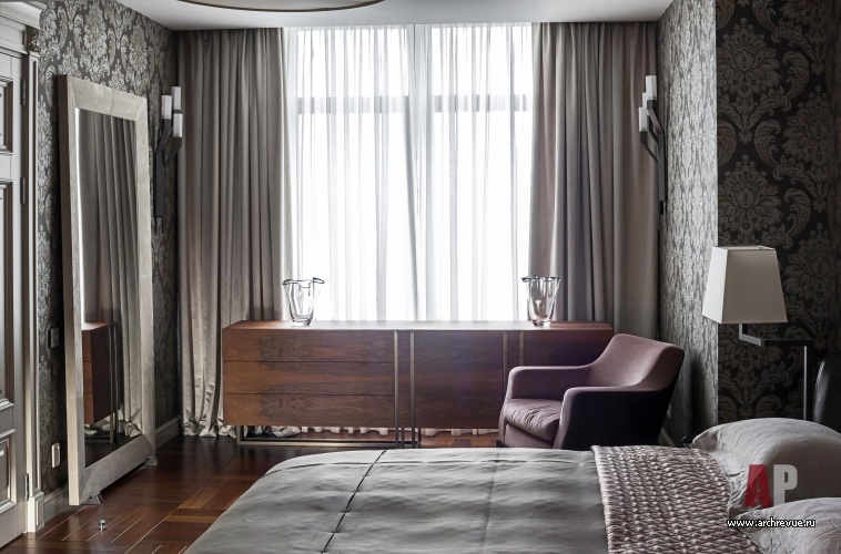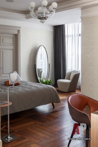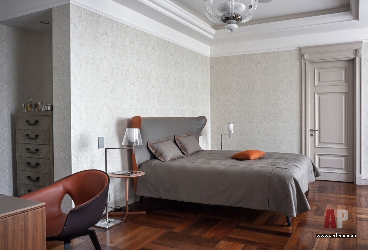 Спальня хозяйки кровать, рабочее кресло Poltrona Frau, кресло Promemoria