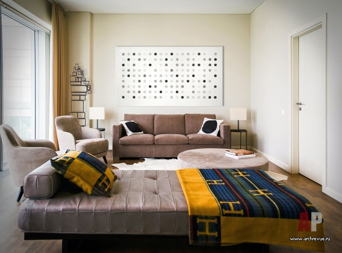 Гостевая диван, Minotti, кресло Casamilano, кушетка De Sede, прикроватные столики Maxalto