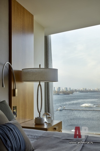 Чтобы сохранить акценты на захватывающие перспективы и сделать интерьер продолжением пейзажа за окном, Ольга сделала ставку на современный дизайн с отсылками к яхтенному стилю и элементами азиатской эстетики. В итоге получилась стильная и комфортная видовая квартира для двоих.
