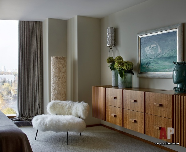Спальня кровать, прикроватные тумбочки, на заказ, изготовление «Мастерская Артема Степаняна»; кресло, Baxter, салон Krassky