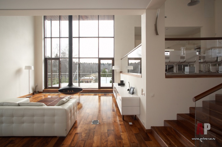 Благодаря чему помещения наполняются воздухом и льющимся светом, а простота декора оборачивается сложным, наполненным функциями и комфортом жилым объемом.