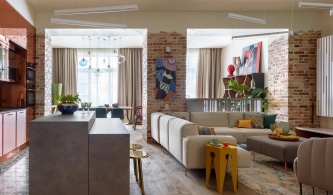 В распоряжение архитекторов досталось пространство площадью более 1000 кв. м – единый объем с высокими потолками, панорамными витринами, круглыми колоннами и огромными пространствами. Организовать конструктивистскую архитектуру – задача не из легких: требовалось сохранить ощущение модернистского пространства и в то же время разбить его на сомасштабные человеку зоны.
