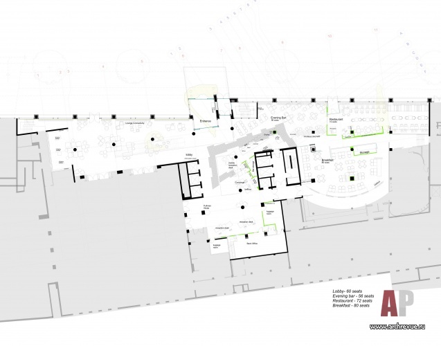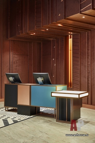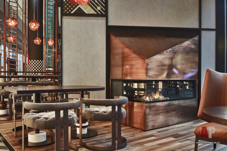 Нужно было эффектно выделить зону рецепции, обозначить мягкую группу для отдыха и спроектировать рестораны, в которые также предусмотрен доступ с улицы. При этом каждый этап работы над проектом был четко регламентирован нормами, правилами и корпоративными стандартами сети. В итоге архитекторы перенесли стойки ресепшен и рестораны в зоны прямой видимости, максимально открыв их от входа, а также спроектировали камерные зоны отдыха.
