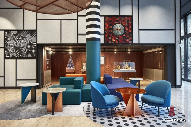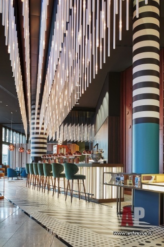 Выиграли его российские архитекторы, которые смогли предложить смелый проект, вдохновленный архитектурой Баухауса – самого немецкого в мировой культуре явления. Еще одной отправной точкой в поиске дизайнерского решения стало расположение отеля вблизи берлинского зоопарка. Так, в пространстве общей группы появилась гигантская зебра – авторская инсталляция, работающая на просвет и отлично просматривающаяся с улицы. Соседство с зоопарком, элементы школы функциональной архитектуры, русская смелость и фирменная ирония в итоге обеспечили бесспорный «вау»-эффект.