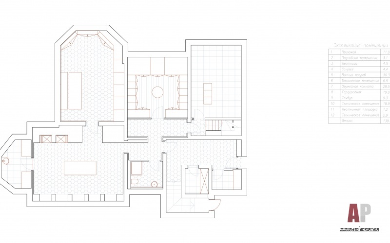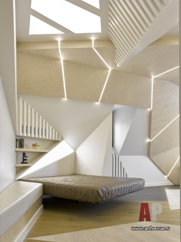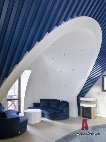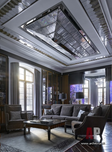 Мебель и светильники привезены из Европы, аутентичный настрой создают антикварные предметы, которые добавлены как акценты. Третий этаж – своего рода экспериментальная территория, здесь ставка сделана на модернизм 1960-70-хх годов и деконструктивизм 2000-х годов. Интерьер полон авторских решений и находок, стеновые панели, мебель, художественные элементы сделаны на заказ по эскизам, над ними работали лучшие российские специалисты. За многоплановой декоративной оболочкой скрывается продуманный до мелочей конструктив и инновационные инженерные решения.