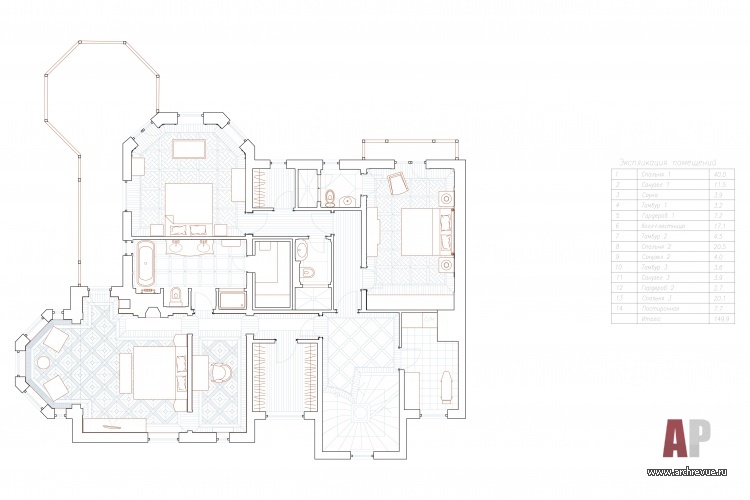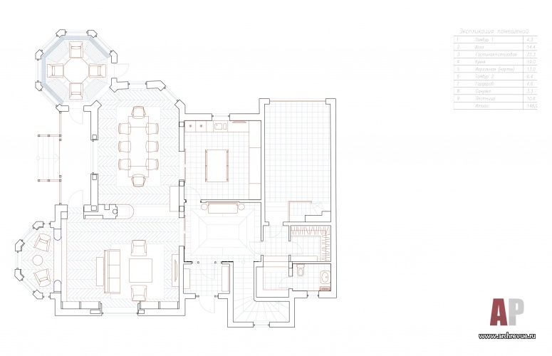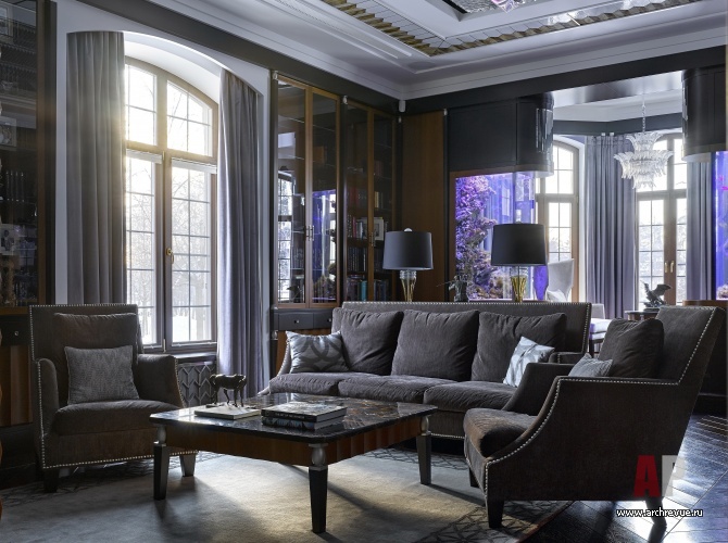 Оформленный архитектором Кузьмой Зориным дом в поселке «Довиль» - настоящая энциклопедия по истории стилей мировой архитектуры. «Заказчик обратился с пожеланием создать интерьер в стиле неоклассика, - вспоминает автор проекта. – Мы же ему предложили расширить рамки и поэкспериментировать с пространством. Большая площадь и многофункциональность дома, а также необходимость учитывать предпочтения всех членов семьи, вдохновила на стилистически сложный проект, в котором прочитывается история искусств за последние 200 лет: начиная с эпохи Наполеона III через ар-деко к современным течениям середины XX века – модернизму и деконструктивизму».