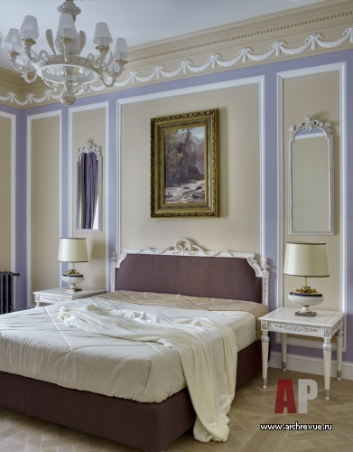 Спальня кровать, прикроватные столики, банкетка Labarere, комод Plaisance, кресла JCD, журнальный столик Drugeot, туалетный столик Emergroup