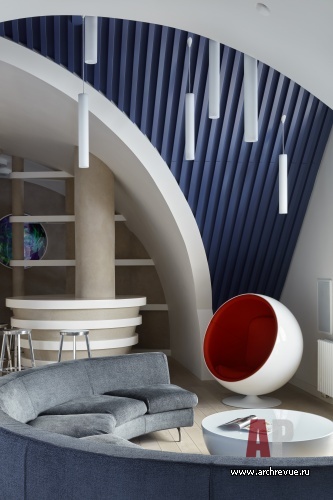 Зона отдыха диван Minotti (модель Dubuffet), журнальный столик Bonaldo (модель Planet), барные стулья Magis